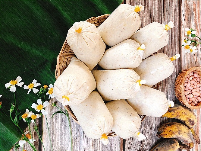 – Cho tất cả chuối mít đã xay nhuyễn, mít cắt nhỏ với đậu phộng vào nồi sữa dừa còn ấm khuấy đều, cho vào túi nhỏ rồi để ngăn đá tủ lạnh cho cứng.
