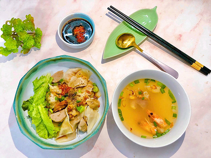 Sủi cảo vỏ dai dai mềm mềm, nhân vừa miệng, nước trộn đậm đà, ăn cùng rau, là món ăn đổi vị cho những ngày ‘work from home’.