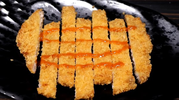 Miếng thịt sườn cốt lết chiên xù sau khi thành phẩm sẽ có màu vàng đẹp mắt của lớp áo bột, khi ăn bạn sẽ cảm nhận được độ giòn rụm của lớp bột bên ngoài và phần thịt mềm bên trong.