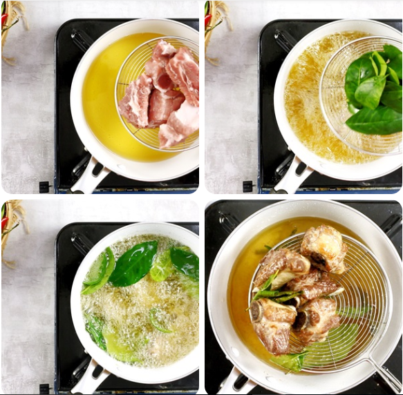 Sườn rim lá chanh là một món ăn rất thích hợp trong các bữa ăn gia đình thường ngày đó. Sườn non chiên vàng áo thêm lớp sốt đậm vị mặn ngọt và mùi thơm từ lá chanh rất hấp dẫn.