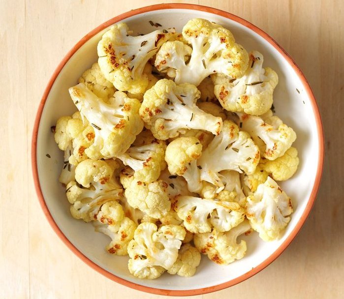 Súp thơ thái nhỏ sau đó trộn tất cả các thành phần đã chuẩn bị với nhau, trải đều ra khay nướng và nướng 20-25 phút đến khi súp lơ chín mềm và có màu nâu nhạt.