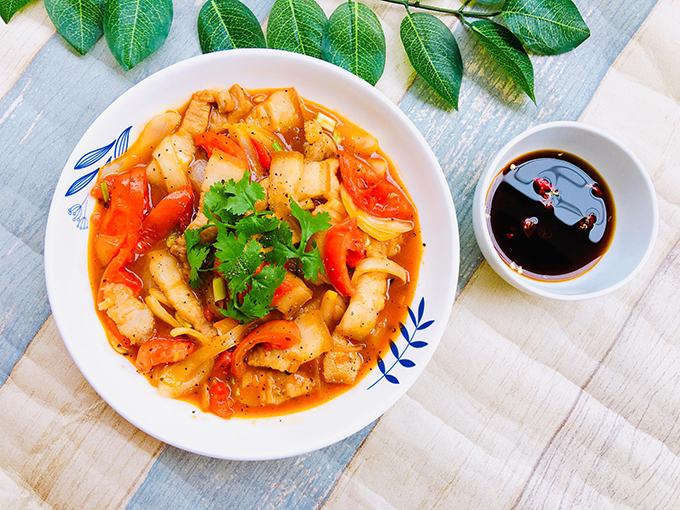 Thịt ba chỉ béo thơm, thấm vị cà chua đậm đà hấp dẫn, là món ăn giản dị nhưng cũng rất hao cơm.