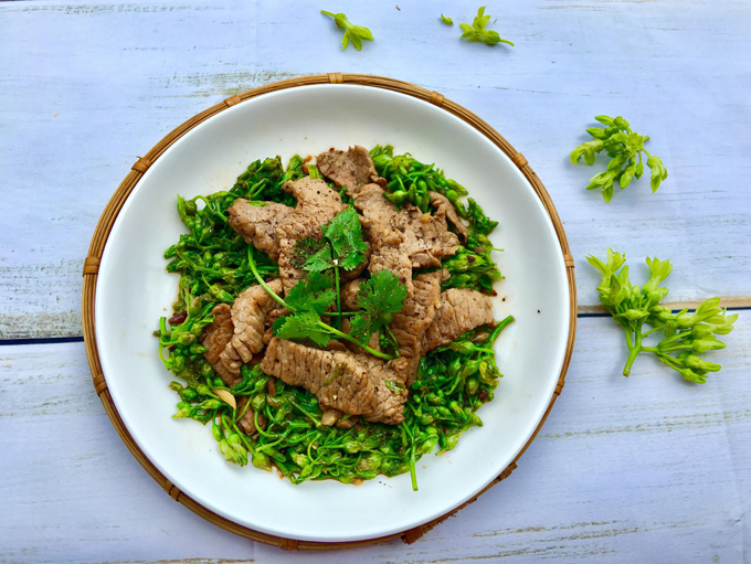 Hoa thiên lý rất có lợi cho sức khỏe, xào cùng thịt bò trở thành món ăn đủ chất mà lại không ngán.