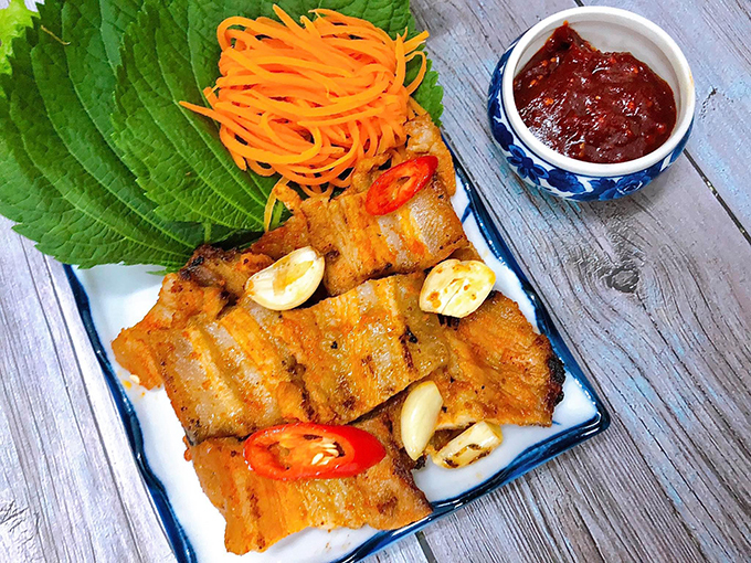 Thịt nướng thơm nức, ăn kèm tương đỏ, lá mè, xà lách, dưa chuột, chẳng khác nào thưởng thức ở nhà hàng Hàn Quốc.
