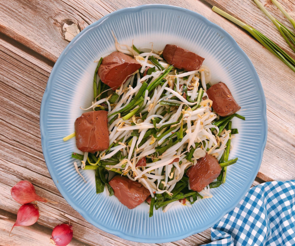 Bạn có thể đổi món cho gia đình bằng món tiết lợn xào cùng giá hẹ, vừa đủ chất vừa không ngán.
