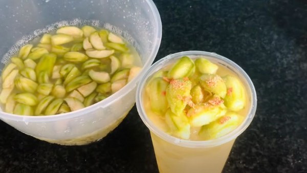 Sau đó, bạn cho cóc đã ngâm đường vào trong tủ lạnh để bảo quản, dùng được từ 3-4 ngày.