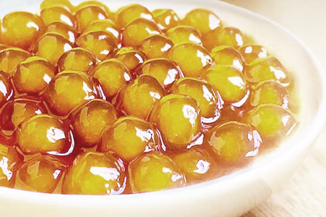 – Cho đường và mật ong còn lại vào 630ml nước đường đã nấu, đun đến khi sôi rồi để nguội, ngâm toàn bộ trân châu vào nước đường đã nguội.