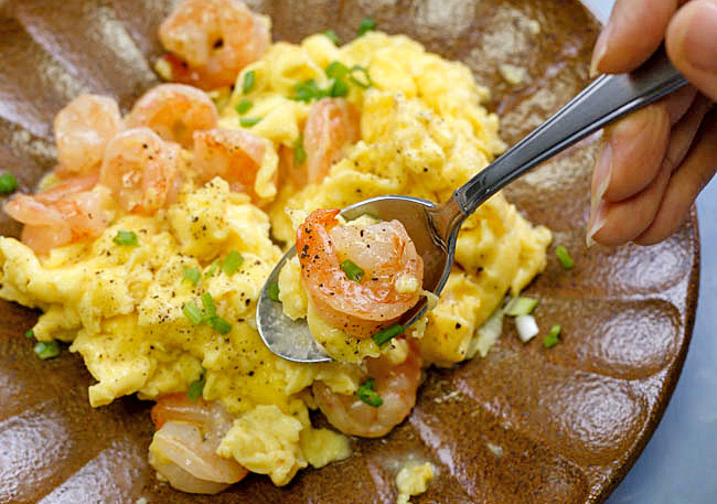 Vẫn là món trứng quen thuộc nhưng bạn có thể thay đổi cách làm một chút và thêm tôm cho lạ miệng.