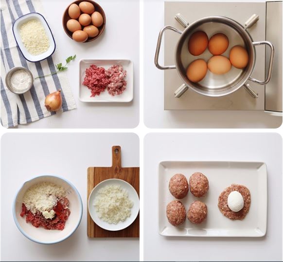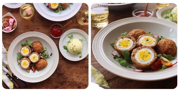 Trứng gà bọc thịt chiên xù với lớp vỏ chiên xù, giòn béo, thơm ngon, bao lấy nhân trứng gà luộc bùi bùi hấp dẫn. Chấm cùng các loại sốt chua cay, mặn ngọt ưa thích thì còn gì bằng.