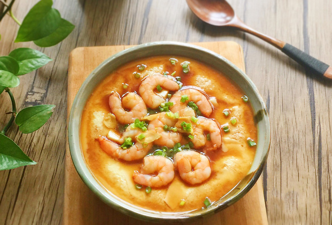 - Nếu không muốn dùng hành tươi bạn có thể cắt nhỏ rồi rắc vào đĩa trứng, hấp tiếp khoảng 1 phút thì tắt bếp. Trứng hấp đậu phụ mềm mịn, rất đậm đà hòa quyện với những con tôm tươi, thịt chắc ngọt hấp dẫn cực kỳ.