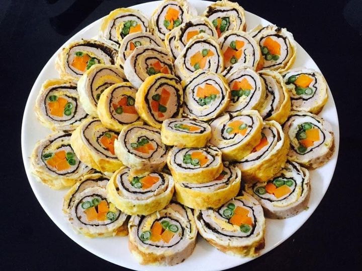 - Rán thật chín lòng đỏ và lòng trắng, nhớ rán chín đừng rán non khi cuộn sẽ bị rách nhé. Rán xong bỏ ra đĩa.