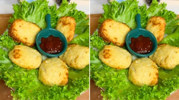 Ức gà khoai tây có màu vàng đẹp mắt. Ức gà mềm, thơm hành tím và đặc biệt là không bị khô. Có khoai tây nên miếng chả còn có vị bùi béo rất đặc biệt. Chấm ức gà khoai tây với tương ớt lại càng đậm đà hơn.