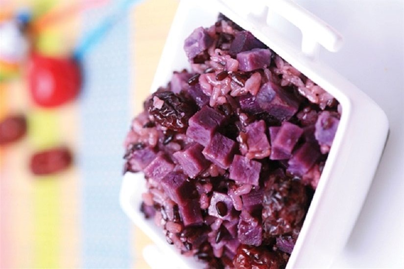 Ngâm gạo nếp với nước lá cẩm