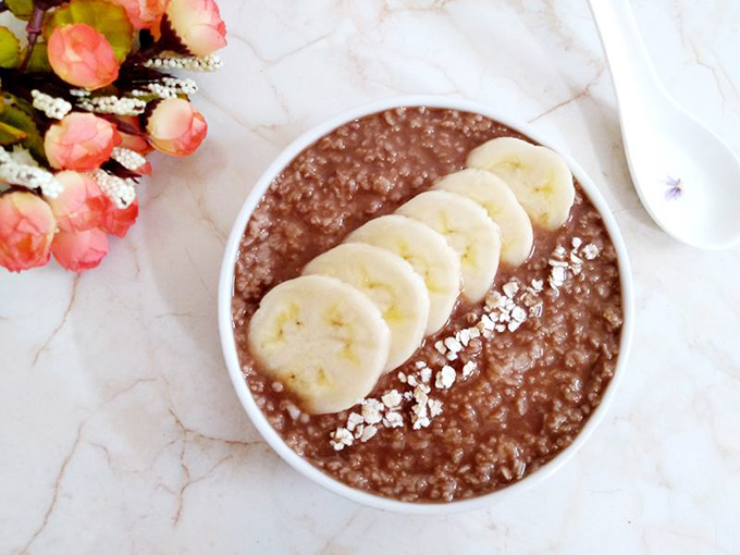 Bữa sáng không phải ra hàng quán, cũng không cần phải tốn nhiều thời gian chế biến, chỉ cần một bát yến mạch chuối chocolate là đủ ngon miệng.