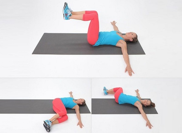 Trước khi đi ngủ, bạn chỉ cần nằm duỗi thẳng tây chân sau đó thu 2 chân lại rồi xoay cả người cả chân sang bên trái trước. Sau đó trở về vị trí ban đầu rồi lại tiếp tục xoay sang phải. Giữ thẳng cổ và đầu.