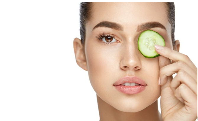- Dưa chuột: Dưa chuột có hàm lượng nước cao, cung cấp cho cơ thể nhiều chất lỏng, tăng cường sản xuất collagen và tăng tính đàn hồi của mạch máu giúp giảm quầng thâm. Có thể sử dụng dưa chuột đắp mặt để làm giảm quầng thâm mắt.