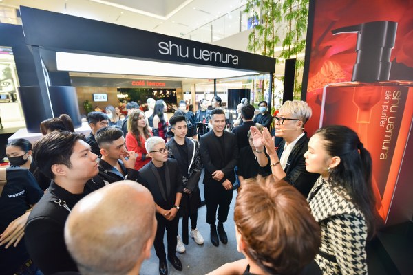 Đêm chung kết cuộc thi "Shu Artistry" đã đón nhận sự tham gia đông đảo của giới nghệ sĩ trang điểm và những bạn trẻ yêu thích ngành làm đẹp. Không gian sự kiện được thiết kế đặc biệt như một khu vườn Nhật Bản giữa lòng thành phố, mang lại trải nghiệm thú vị cho khách tham gia "hành trình làm đẹp chuẩn Nhật" có một không hai này. Sau khi check-in và nhận ảnh chụp tại khu vườn Nhật Bản xinh đẹp, khách hàng cũng được trải nghiệm phương thức mat-xa "shiatsu" nổi tiếng của Nhật Bản sử dụng dầu làm sạch và tẩy trang botanicoil mới. Bên cạnh đó là khu vực trải nghiệm sản phẩm với kem nền chuẩn bền, lâu trôi suốt 16h "unlimited" sẽ tư vấn cho khách tham gia cách lựa chọn màu nền phù hợp với tông da của mình từ các chuyên gia "shu atelier" qua 2 dòng sản phẩm "matte-mịn lì lâu trôi" và "glow-căng bóng rạng rỡ".