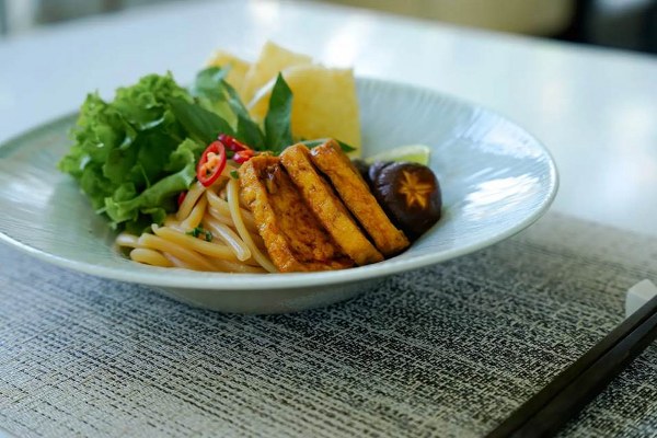 Tại TIA Wellness Resort, thực khách sẽ được thưởng thức món cao lầu chuẩn vị truyền thống với thịt lợn xá xíu, hoành thánh chiên giòn, nước dùng đậm đà nấu từ thịt, phục vụ kèm giá đỗ và các loại thảo mộc địa phương. TIA Wellness Resort cũng phục vụ cao lầu chay được chế biến với đậu phụ và nước sốt tương sả dành cho những người ăn thuần chay.