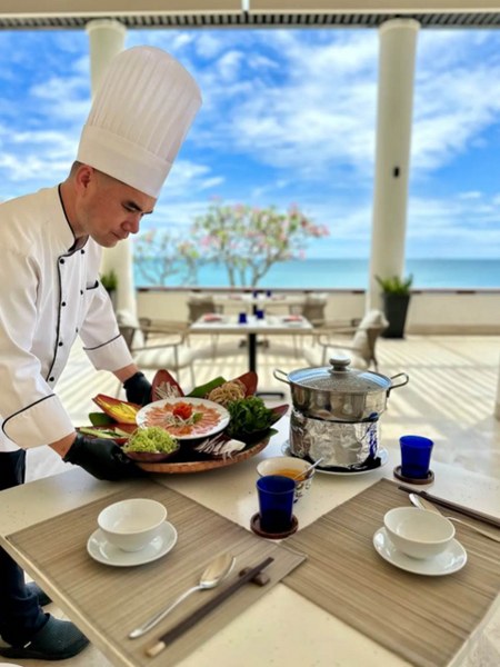 Tại Azerai Kê Gà Bay, thực khách muốn thưởng thức lẩu thả cần đặt trước một ngày để đảm bảo nguyên liệu luôn được tuyển chọn tươi ngon nhất.