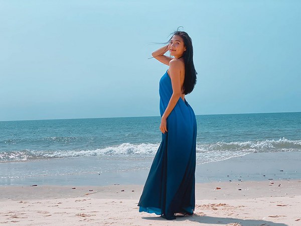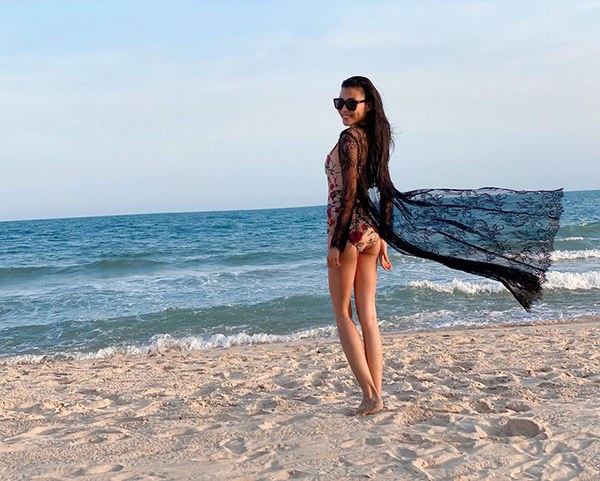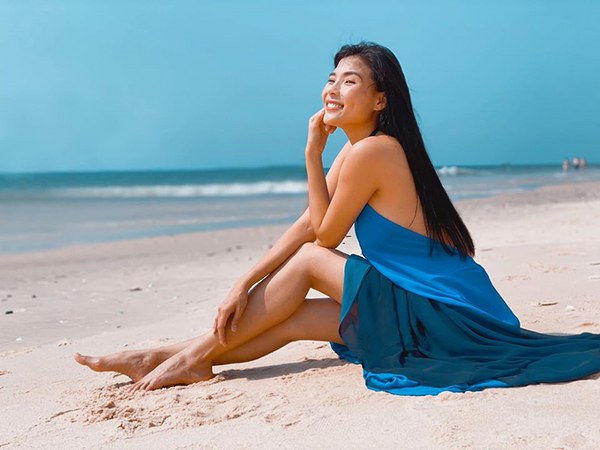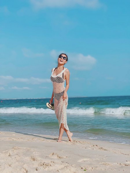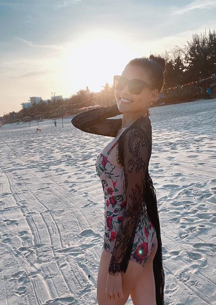 Từ khi có con trai Bảo Bảo, Thuý Diễm thấy vóc dáng mình thu hút hơn với ba vòng gợi cảm và làn da nâu rám nắng.