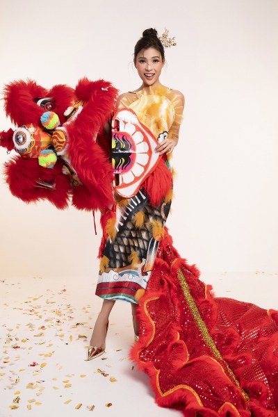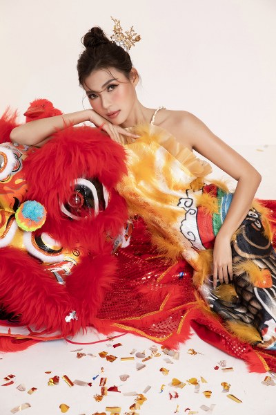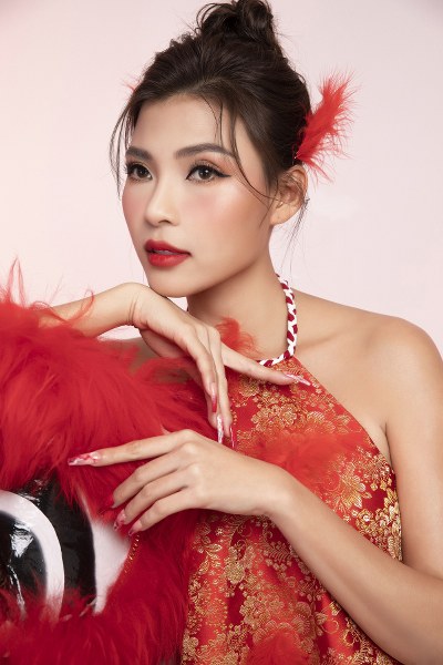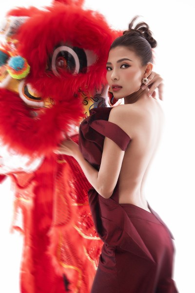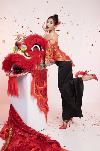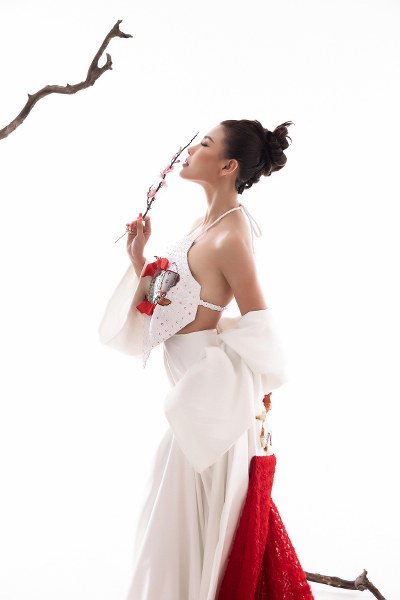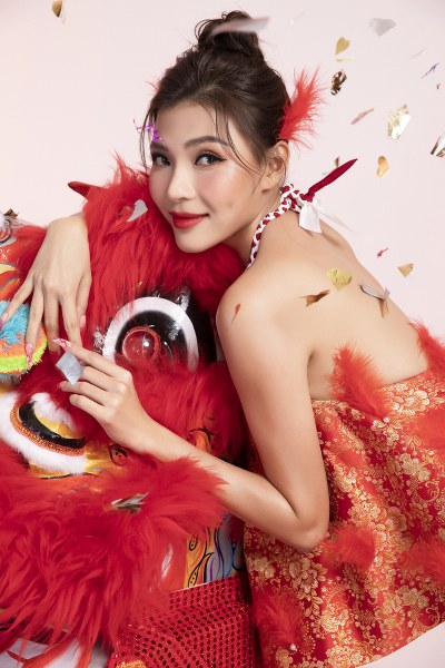 Diễn viên Thúy Diễm diện áo yếm, khoe nhan sắc \"gái một con\" trong bộ ảnh mừng xuân Tân Sửu do đạo diễn Lê Thiện Viễn thực hiện.