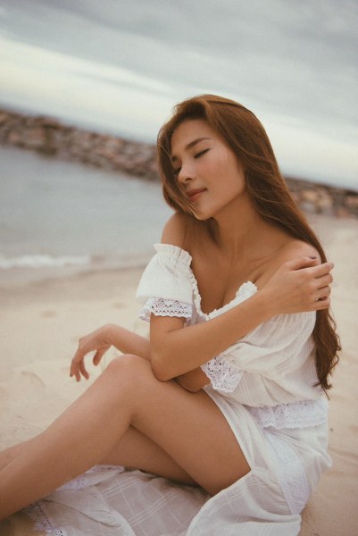 Bà mẹ một con luôn cuốn hút ở mọi khung hình dù ăn mặc đơn giản và không trang điểm khi ra biển.