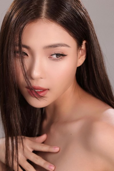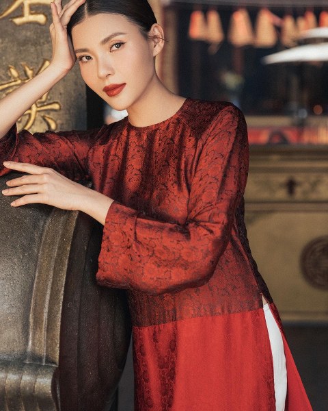 Nữ diễn viên nền nã, kín đáo trong tà áo dài truyền thống, khác hẳn hình ảnh cá tính trên phim. Tuy vậy cô vẫn rất quyến rũ.