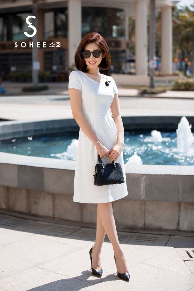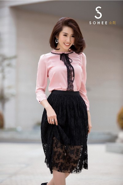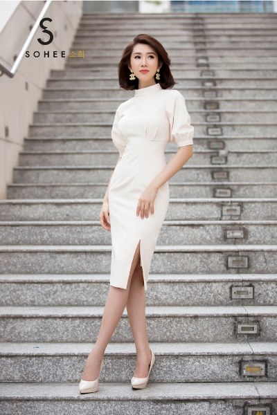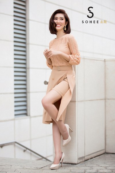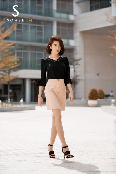 \'Hân hoa hậu\' khoe nhan sắc tươi trẻ khi diện các thiết kế đồ công sở, trong bộ sưu tập xuân hè 2019 của thương hiệu thời trang Sohee.
