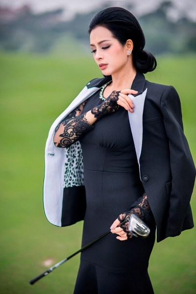 Không xuất hiện trên sân golf với những bộ trang phục hiện đại và năng động, Thúy Hằng - Thúy Hạnh đã chọn cho mình phong cách quý bà quý cô sang trọng, cổ điển mang mang dáng dấp phụ nữ thế kỷ 19.