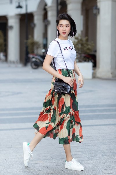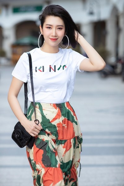 Diễn viên Thúy Ngân yêu thích sự nữ tính lẫn năng động cho phong cách thường ngày của mình.
