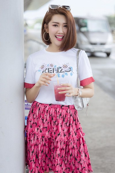 Thúy Ngân phanh áo khoe ngực đầy, eo thon trong loạt hình mới với phong cách thời trang kẹo ngọt.