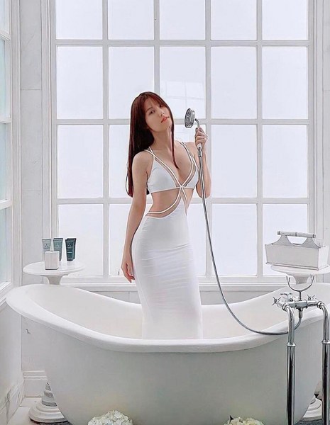 Diễn viên Diễm My 9x mặc kiểu váy giống Ngọc Trinh để khoe dáng gợi cảm khi đi nghỉ dưỡng.