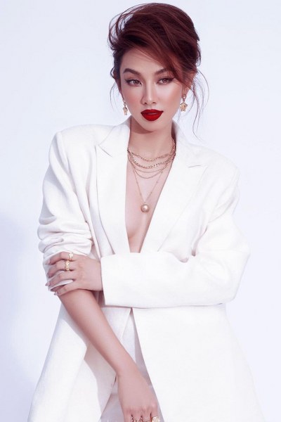 Hoa hậu Hòa bình Quốc tế 2021 Thùy Tiên \'thả rông\' vòng một khi diện suit trắng thời thượng.