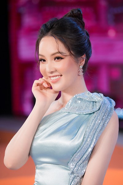 Á hậu Thụy Vân tự tin khoe nhan sắc khi dự sự kiện và lên hình sau khi giảm 4 kg trong thời gian giãn cách xã hội.