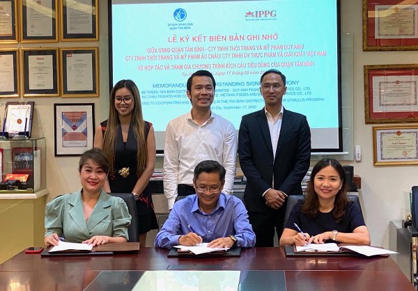 Vừa qua, Lễ ký kết biên bản ghi nhớ giữa UBND quận Tân Bình và các công ty thành viên tập đoàn IPPG: Công ty TNHH Thời trang và Mỹ phẩm Duy Anh/ Công ty TNHH Thời trang và Mỹ phẩm Âu Châu/Công ty TNHH Dịch vụ Thực phẩm và Giải khát Việt Nam về hợp tác và tham gia chương trình kích cầu tiêu dùng của quận Tân Bình đã diễn ra thành công tốt đẹp.