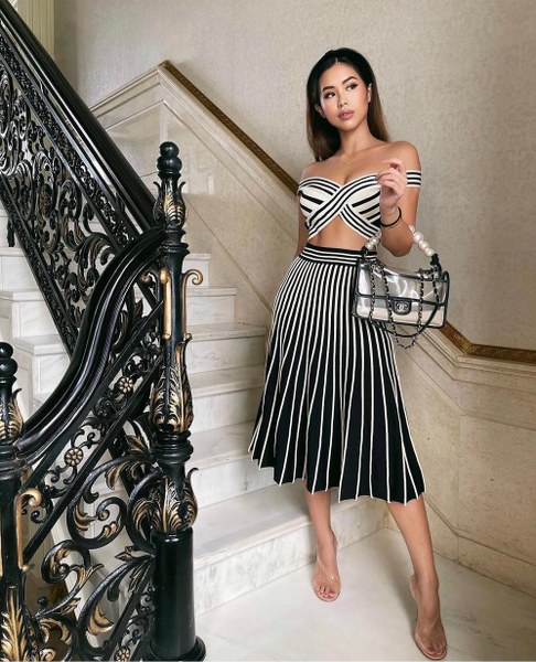 Hot girl Tiên Nguyễn chọn trang phục hở eo, khoe vai trần, tôn chân thon tạo điểm nhấn cho phong cách cá nhân.