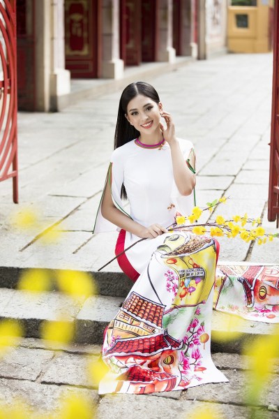 Vốn quen thuộc với hình ảnh hiện đại trong các bộ cánh lộng lẫy tại những sự kiện, hay trang phục thời trang đời thường, nay Tiểu Vy lạ lẫm khoe nét dịu dàng khác biệt, khi xuống phố với tà ào dài của NTK Ngô Nhật Huy được thiết kế dành riêng cho nàng hậu 18 tuổi.