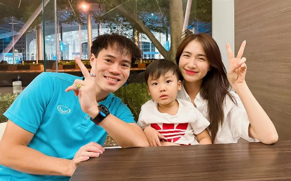 Văn Toàn chụp ảnh cùng Hòa Minzy và con trai của cô.