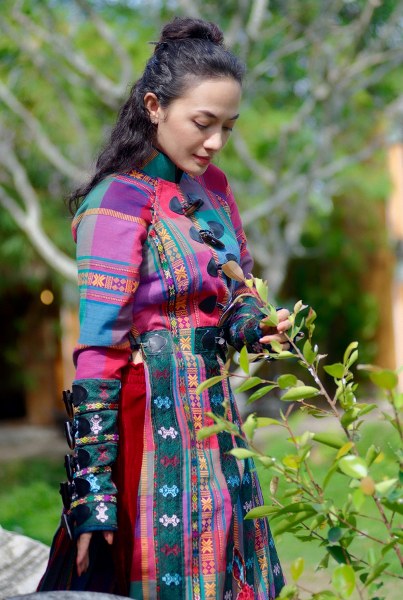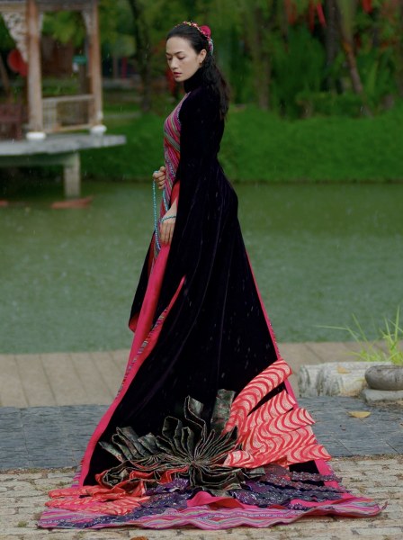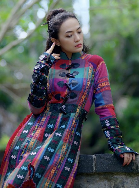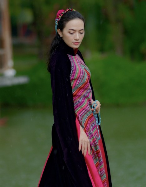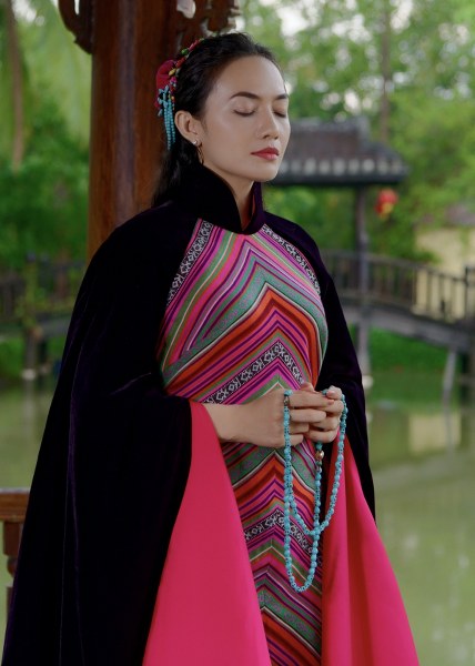 Tinna Tình diện áo dài cách tân dáng cape họa tiết thổ cẩm, chất liệu voan tơ thoáng mát trong bộ ảnh mới