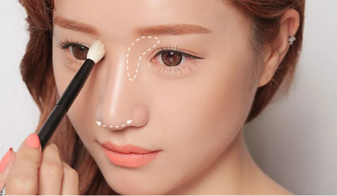 Sử dụng phấn mắt pha trộn giữa tông đậm và nhạt, có thẻ pha giữa màu tím ở phần mí mắt rồi tông nâu nhạt dần ở phía trên để tạo chiều sâu cho mắt, khiến đôi mắt trở nên to và đẹp hơn.