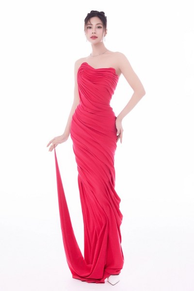 Tô Diệp Hà cho biết thích những mẫu đầm cúp ngực xếp nếp tỉ mỉ. "Trang phục có nhiều ưu điểm, giúp người mặc tôn làn da sáng và nét gợi cảm. Chị em có thể phối với loạt nữ trang kiểu dáng thanh mảnh, trang điểm phong cách Hàn Quốc", người đẹp nói.