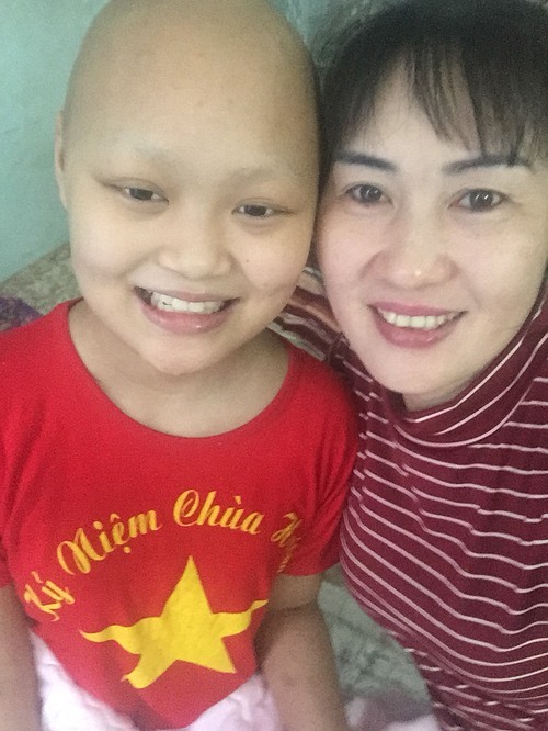 "Thi thoảng, con bé sờ lên mái đầu trọc lốc rồi hỏi: ‘Tóc con sẽ mọc lại đúng không mẹ, con còn chẳng nhìn thấy mình trong gương, mắt con sẽ nhìn lại được mẹ nhỉ’. Nghe con nói tôi chỉ biết ậm ừ cho qua rồi đánh trống lảng sang chuyện khác. Bác sĩ nói con tôi có thể kéo dài sự sống 5-6 năm nữa, còn nước còn tát, vợ chồng tôi sẽ cố gắng hết sức", chị Duyên kể.