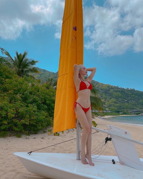 Tóc Tiên than thở \"đừng đùa với biển\" sau khi phơi mình chụp ảnh bikini dưới nắng gắt và nước biển.