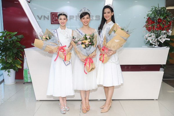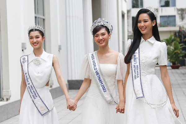 Miss World Vietnam 2022 Mai Phương cùng Á hậu Bảo Ngọc, Phương Nhi diện mốt đơn sắc ở một buổi giao lưu.