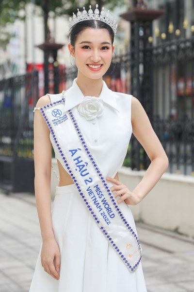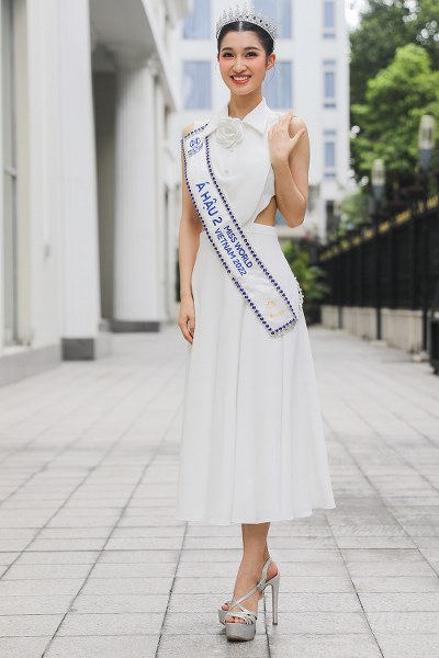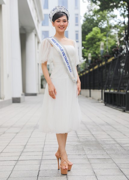 Hoa hậu Mai Phương – 23 tuổi, quê Đồng Nai – chọn bộ đầm lụa phối voan xuyên thấu. Cô cho biết vẫn giữ nguyên cảm giác hạnh phúc sau hai ngày đăng quang. Người đẹp tự hào về nỗ lực của bản thân bởi từ vòng sơ khảo đã đặt mục tiêu, cố gắng để đạt được kết quả tốt nhất.