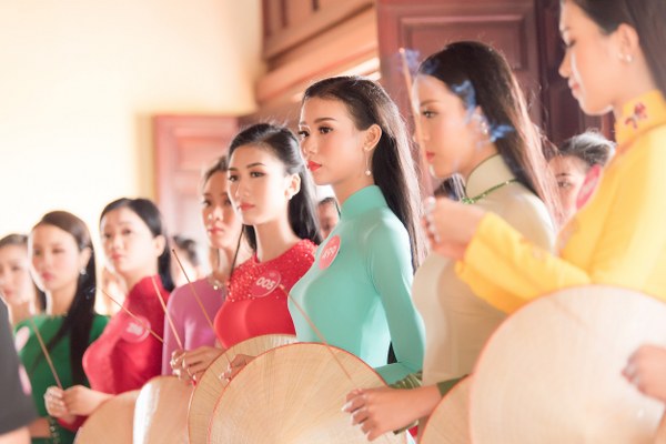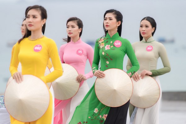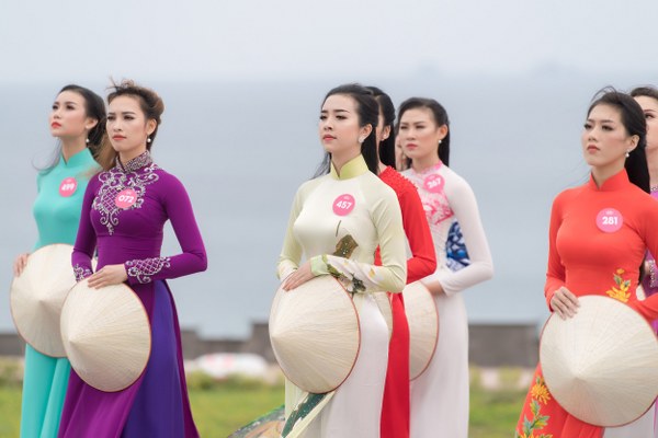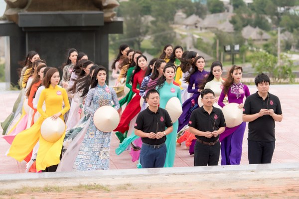 Giữa vẻ đẹp hoang sơ giữa những rặng núi đá của Eo Gió, những tà áo dài truyền thống rực rỡ màu sắc, những gương mặt xinh đẹp và sự duyên dáng của thí sinh chung khảo phía Nam Hoa hậu Việt Nam 2018 như tô điểm cho bức tranh giao hòa giữa trời đất và con người thêm phần hoàn hảo.