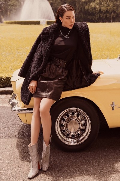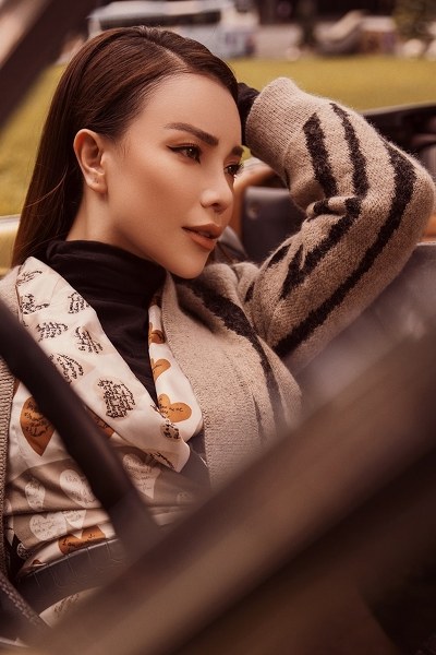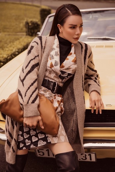 Ca sĩ Trà Ngọc Hằng gợi ý trang phục theo phong cách cổ điển, phù hợp tiết trời cuối thu.