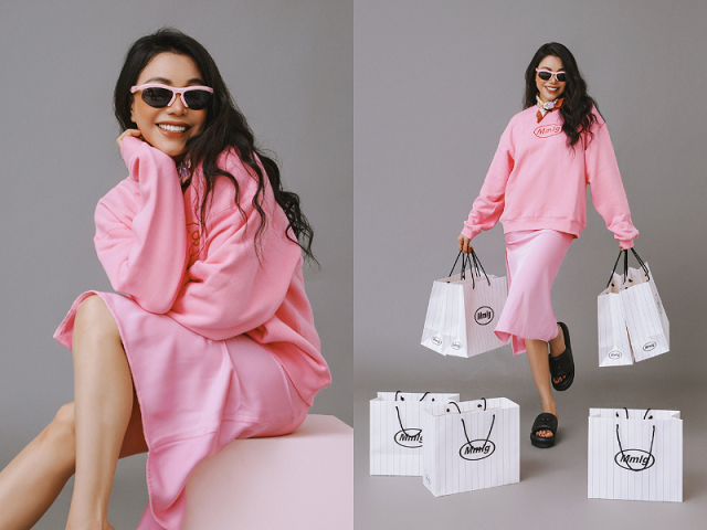 Màu hồng là sắc màu không thể thiếu trong tủ đồ của các chị em gái. Trong bộ ảnh này, Trà Ngọc Hằng cũng gợi ý các bạn trẻ chọn lựa bộ áo liền thân, với phần xẻ nhẹ phía chân váy, tạo cảm giác thoải mái khi di chuyển.