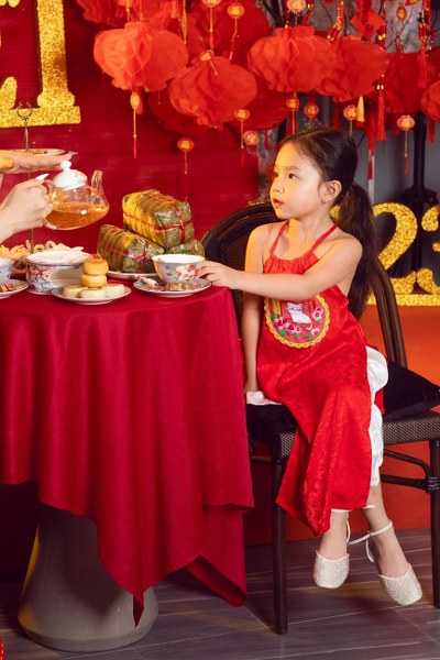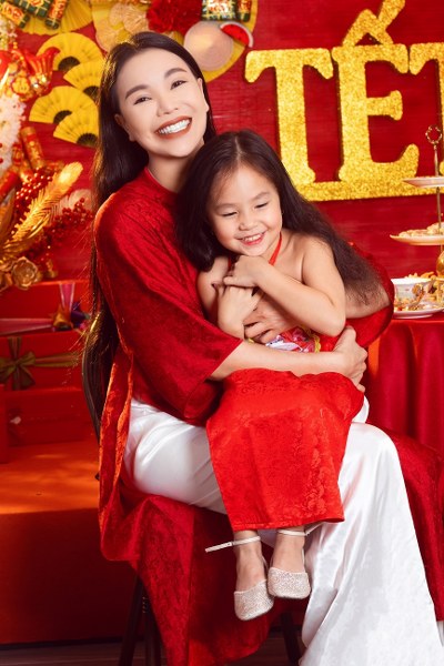 Nữ diễn viên và con gái Sophia trong bộ ảnh Tết 2023 rực rỡ sắc xuân.