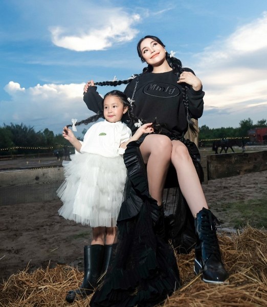 Trà Ngọc Hằng thường phối đồ đồng điệu hoặc diện đồ đôi cùng con gái Sofia.